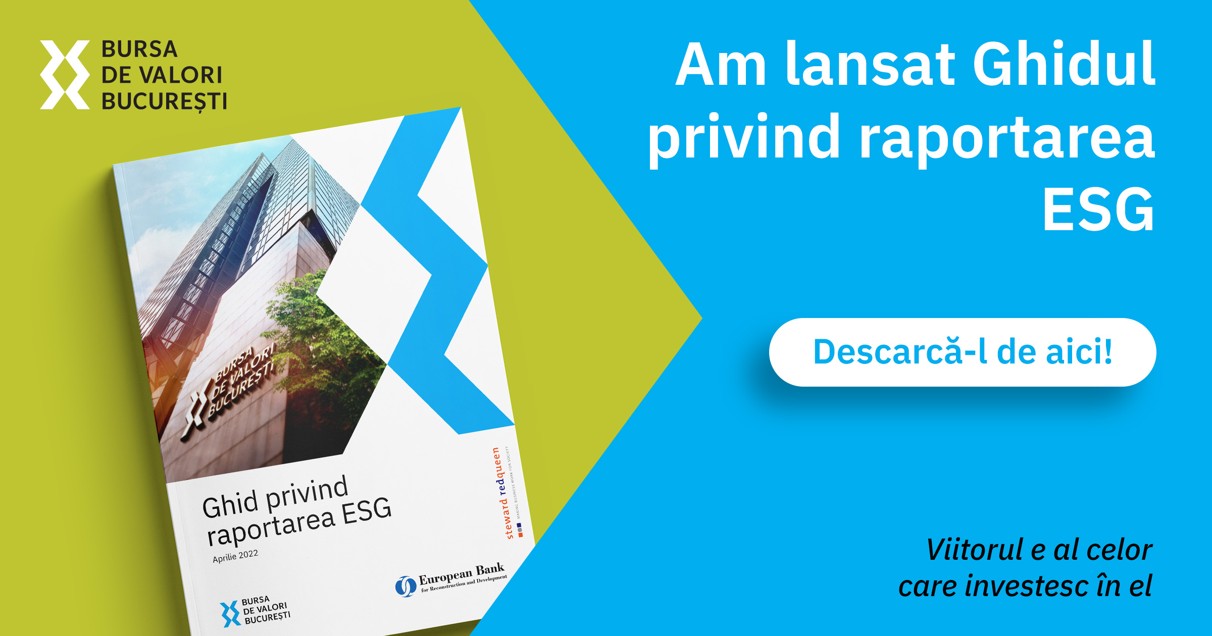 „Bursa de Valori Bucuresti a lansat in anul 2020 primul proiect ESG pe piata locala de capital cu scopul de a promova investitiile responsabile si de a evidentia importanta standardelor ESG in randul participantilor la piata. La inceputul acestui an, am lansat primele scoruri ESG pentru noua dintre companiile listate la bursa. Prin lansarea Ghidului privind raportarea ESG, Bursa de Valori Bucuresti continua initiativele pentru a sustine implementarea standardelor ESG la nivel local si pentru a asigura suport emitentilor locali pentru implementarea acestor standarde in raportarile proprii. Ghidul ofera companiilor listate la bursa informatii valoroase cu scopul de a le ghida demersurile in vederea alinierii la asteptarile investitorilor si partenerilor lor in materie de raportari ESG. Le multumim partenerilor nostri de la BERD si companiei de consultanta specializata in sustenabilitate, Steward Redqueen pentru sprijinul oferit in realizarea acestui ghid care este cu siguranta o resursa practica si coerenta menita sa sustina emitentii de la Bursa de Valori Bucuresti”, a declarat Adrian Tanase, CEO Bursa de Valori Bucuresti.